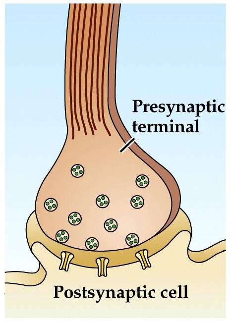 - Neurotransmitter synthesized and/or packaged into vesicles