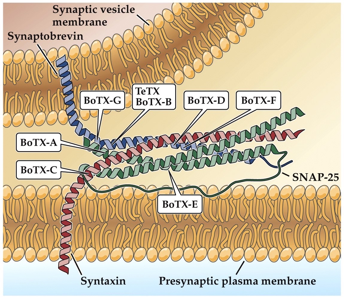 - Botulinum toxins– cleave syntaxin and snap25 (causes botulism)