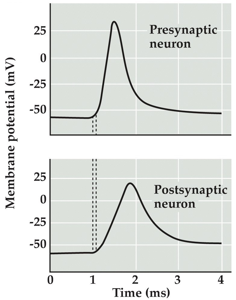 In Crayfish an action potential in one neuron can spread quickly to the next in fraction of a millisecond.