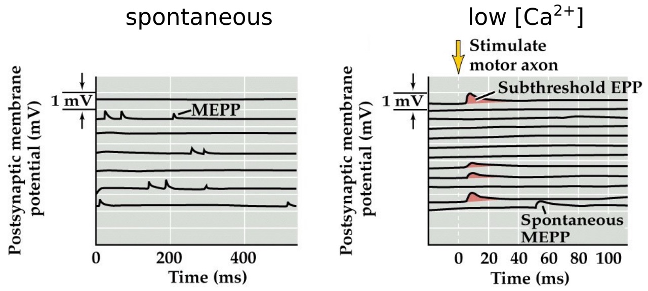 - Bath in low calcium and stimulate you get small subthreshold EPPs that are about the same size as the MEPPs.