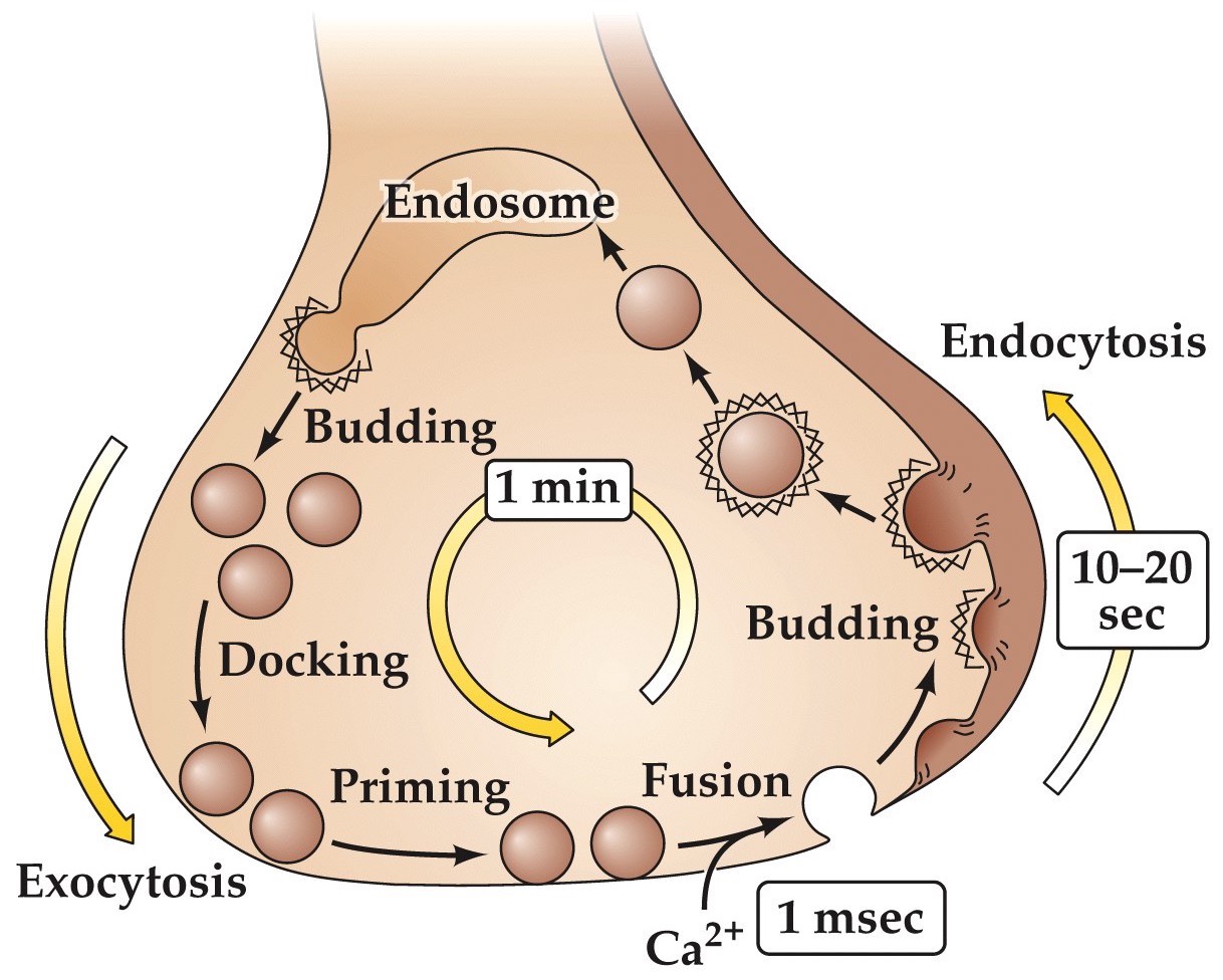 - The vesicular membrane is recovered by endocytosis and recycled